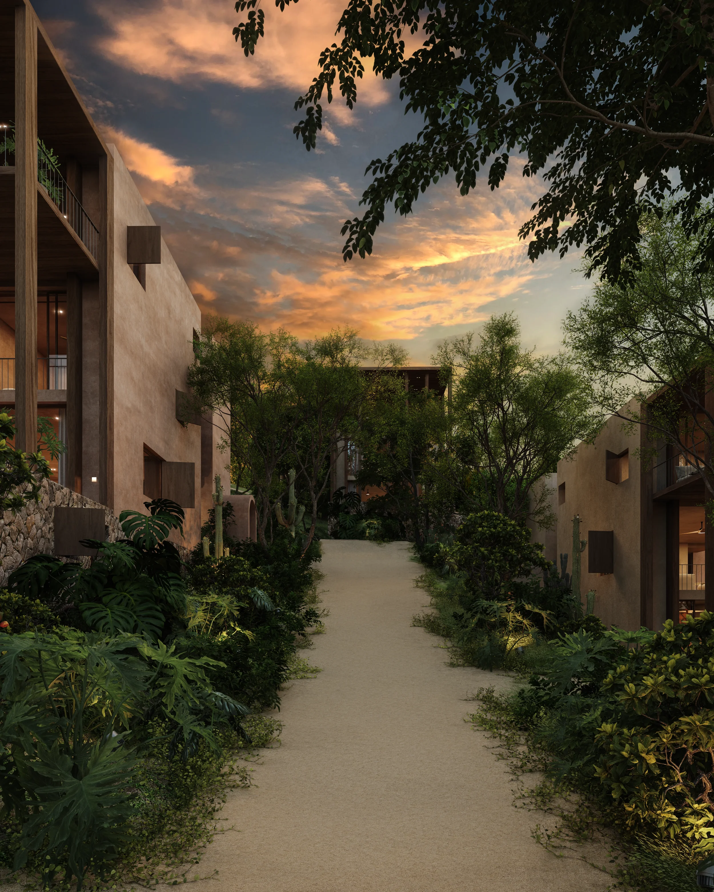 Nearly 80% of daily life unfolds outdoors, while 73% of the land is preserved as native landscape, carefully integrated to respect the site’s natural ecology.